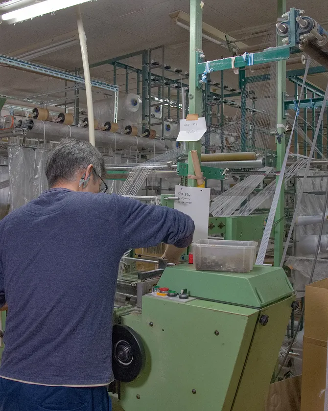 私たちは、素材の選定から製造、納品まで全工程に責任を持って取り組んでいます。「たかがテープ」と決して妥協せず、1本1本の糸に心を込め、細やかな品質管理と誠実な対応でお客さまの信頼に応え続けています。